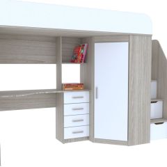 Кровать-чердак подростковая Антилия (Дуб Крафт белый/Белый глянец)
